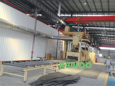KNNJOO Steel Plate Shot Blasting Machine is widely used in the production process of steel plates. It is used to remove rust, scale, and other contaminants from steel plates to improve the surface finish. It is also used for other steel surface treatments like paint removal, paint preparation, and texturing. In addition, it can be used in the production of steel components and metal parts to improve surface roughness and promote adhesion of coatings. With this steel plate shot blasting machine, the steel plates can be efficiently cleaned and the surface of the steel plates can be improved.